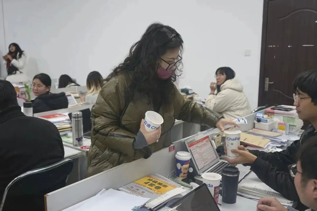 “考研学海苦相随,一杯香醇慰凡心”,仲冬始,雪纷飞,多日来考研学子在至尊国际 楼各个角落里努力背书,往来的老师不仅是看在眼里,更是记在了心里,学生们认真复习的身影始终让老师们牵挂于心。趁着初雪严寒之时,至尊国际 给学生送上一杯热腾腾的奶茶,“奶茶虽小,关怀备至”,一杯奶茶寄托着老师们最真诚的鼓励和最殷切的祝福,凝聚着对大家考研上岸的衷心祝愿,期望他们于实践中收获成长,于辛苦中尝到甘甜,最终都能成功地实现读研梦!