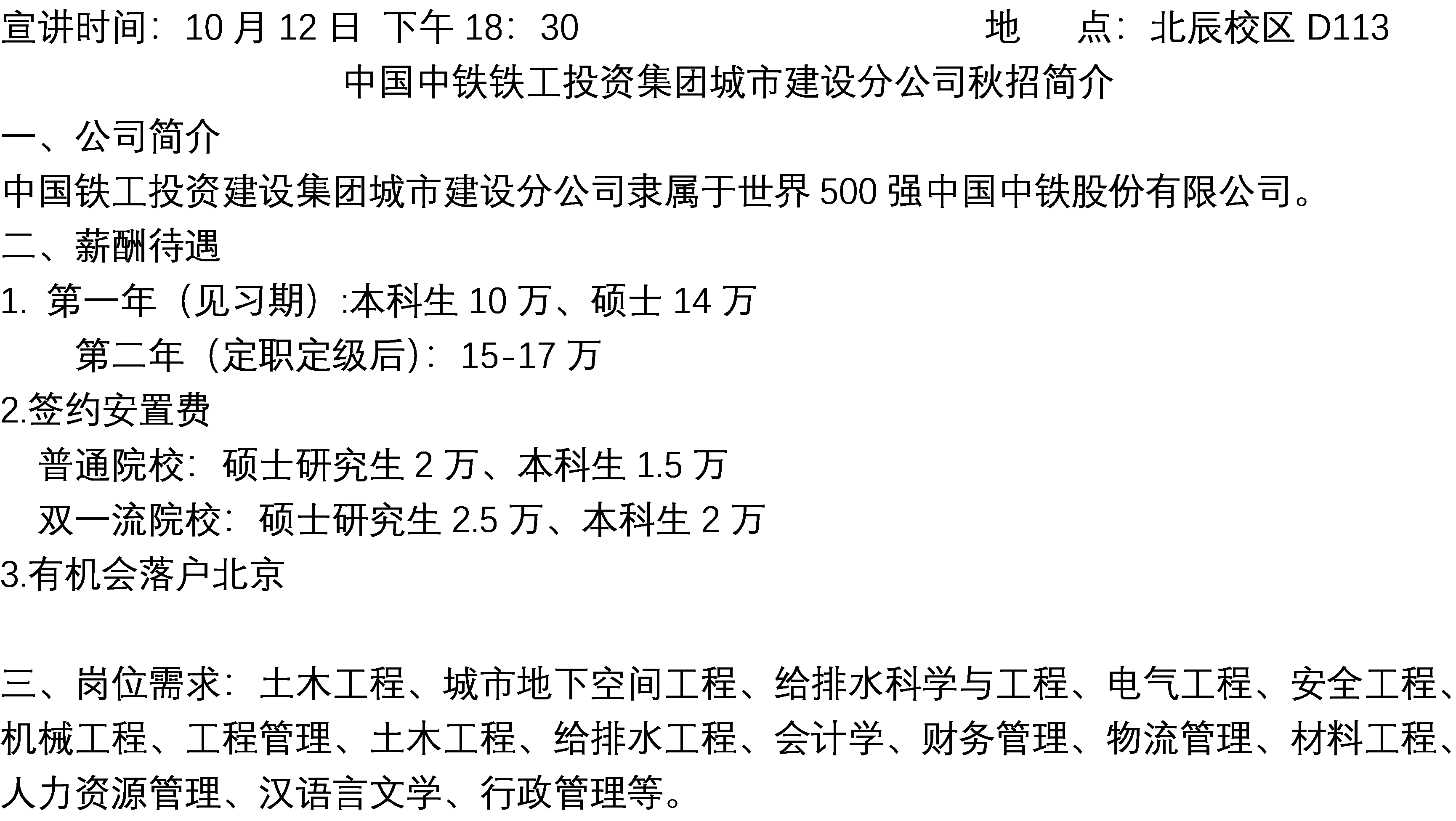 中国中铁铁工投资集团城市建设分公司宣讲会