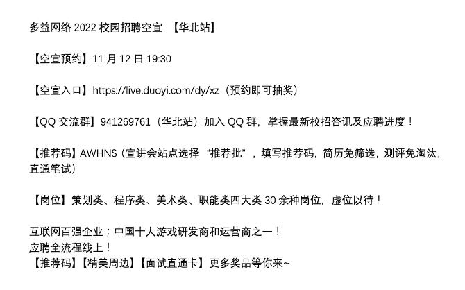 多益网络2022校园招聘空宣【华北站】